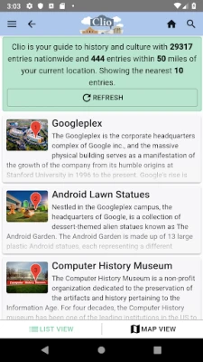 Discover nearby museums, monuments, historical markers, and landmarks. You can also create a walking tour or simply go for a walk or drive and discover nearby historical landmarks, museums, and historical markers near your present location.Each entry and walking tour is created by local historians, universities, historic sites, and museums. Please visit our website to learn how you and your organization can add new entries.