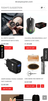 EasyBuy is an online shopping app. It contains several sections, including: Men's and Women's Clothing Watches and Jewelry Electronics Mobile and Computer Accessories Home Needs