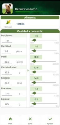 La aplicación te ayuda a realizar el conteo de carbohidratos, calorías, proteínas y lípidos de tu próxima ingesta de alimentos. Los conteos se pueden almacenar por nombre y editar para futura utilización. También puedes consultar los macro nutrientes de los alimentos más comunes en base a la tabla del SMAE.