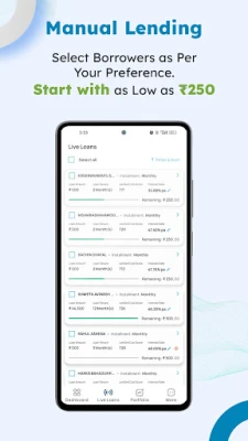 Lump Sum Lending - In this option, you are in control with whom you want to lend. You can use filter options to choose multiple borrowers in one go and lend amount basis your choice only. based on your preferences. You can also track your portfolio growth using our in-built app features.