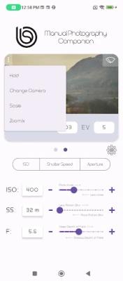 Great for those whom want to keep certain factors of the Exposure Triangle static, whilst the app will compensate the other factors on the fly. Also will provide you with advice if for example your light level is too low for taking photos without a tripod, or based on your current focal length.