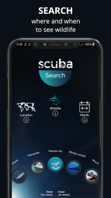 Select an animal you wish to see. You can also add a month and/or region. The app then determines the geographic locations where the chosen marine life can most likely be spotted.