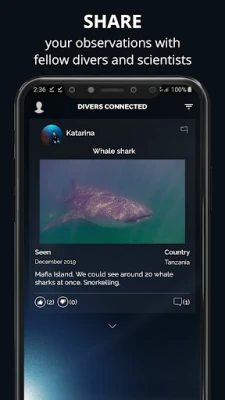 Divers Connected serves as a social platform for divers all around the world to share their experiences publicly. Check what other divers are logging and participate in building a database of sightings, which could help marine scientists in their research.