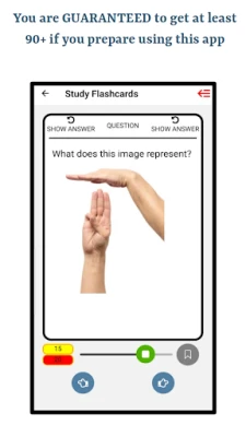 This app uses the state of art methodology to prepare students for the exam. You start preparing using flashcards, where answers are provided on the back of the flashcards. Then you can bookmark flashcards which you feel difficult and think that you don't know the answer that well. You can access the bookmarked flashcards in a different section so that you don't have to go through the list of questions.