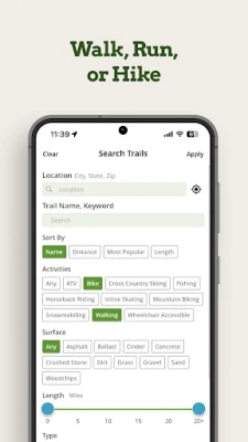 - Filter trails by difficulty level, terrain type, or distance