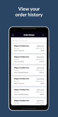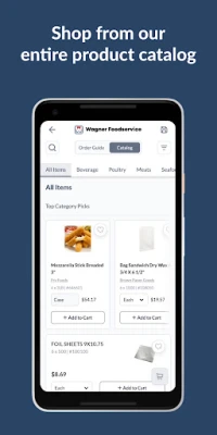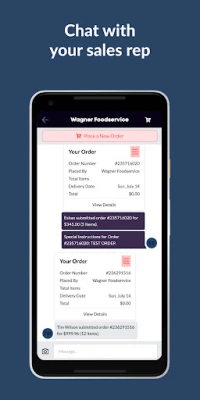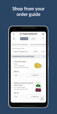 - Simplify your ordering process with a personalized order guide. - Explore our extensive product catalog with item photos and detailed attributes like nutritional info. - Effortlessly access your order history and reorder past favorites. - Conveniently view and pay invoices using Credit Card, Debit Card, or Bank Transfer. - Stay connected with your sales rep and the Wagner Foodservice team through in-app chat. - Collaborate with team members to streamline and enhance your ordering experience.